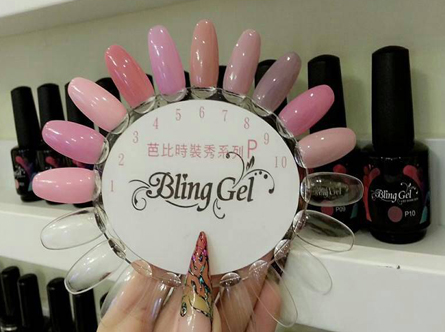 The gels come in an array of colors, apply like polish, with twist cap and applicator, but are cured in a LED lamp in 30 seconds or in two minutes in traditional UV lamps, just like gels. Bling Gel stays on nails for three weeks with no chipping or peeling, and soak completely off in only 15 minutes.